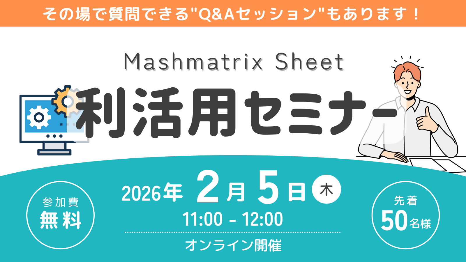 Mashmatrix Sheetをご利用されているユーザ向けの「Mashmatrix Sheet 利活用セミナー」を開催します。