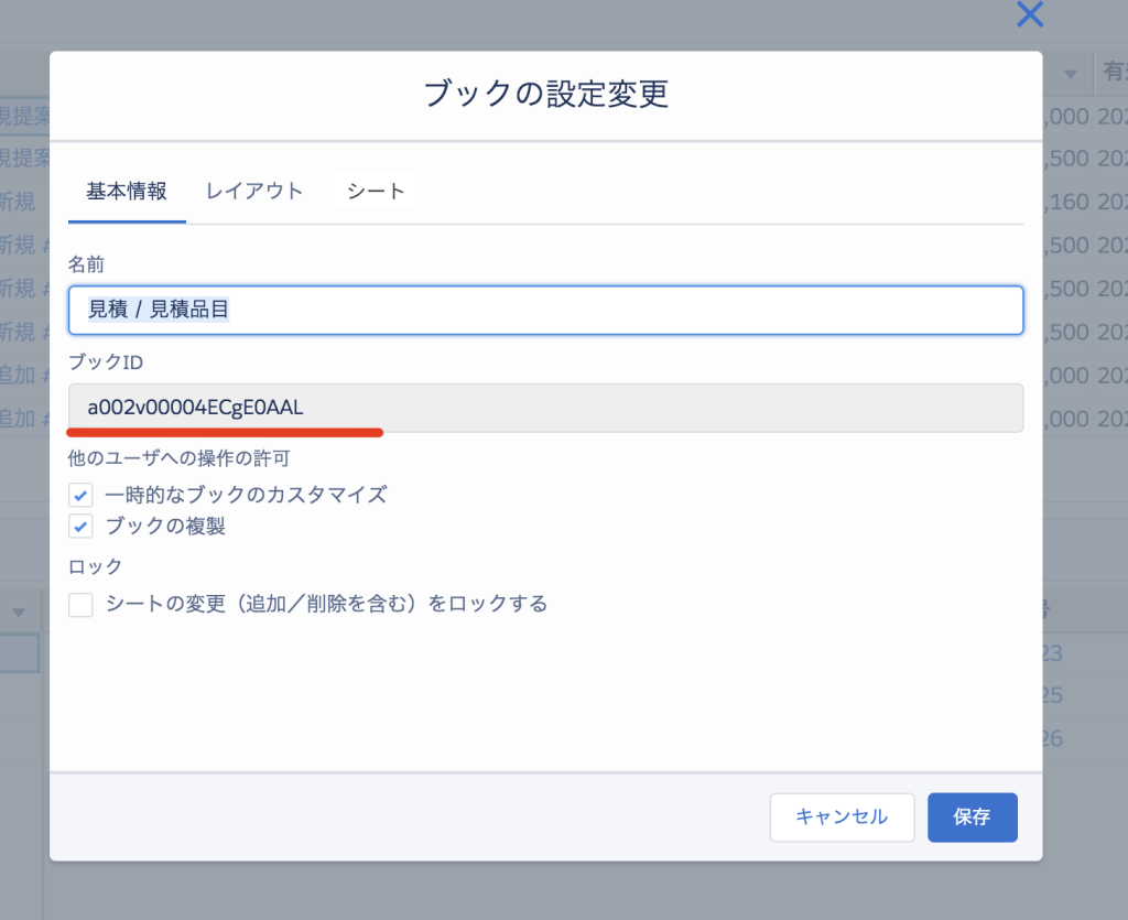 3. 表示させたいブックの、ブックIDをコピーする(表示するシートを指定したい場合は、シートIDもコピーする)ブックメニュー>設定>基本情報