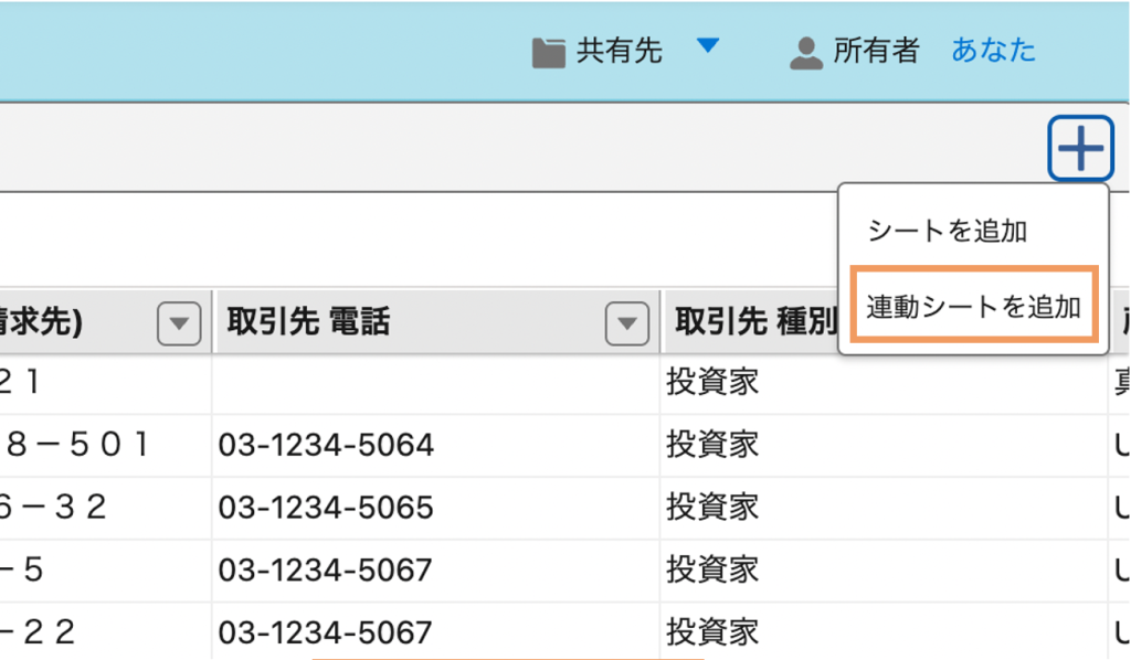1.シート右上にある(+)ボタンをクリックし、「連動シートを追加」を選択