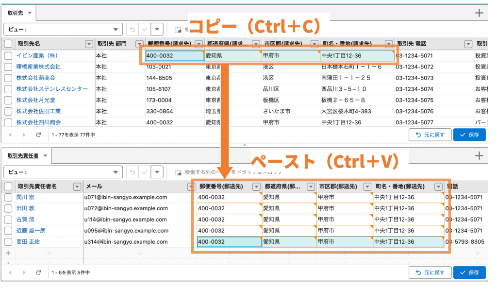 - 複数項目の値をまとめてコピペし一括編集が可能です