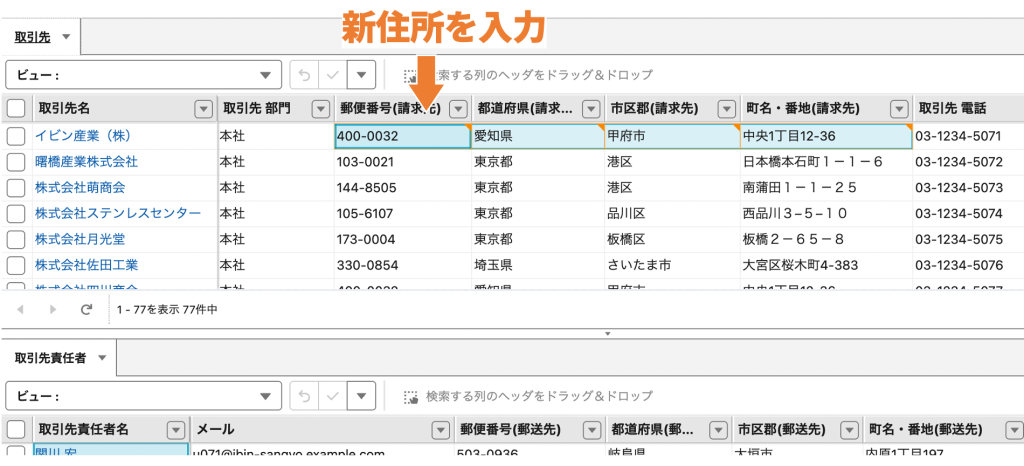 3.取引先の住所を変更し、取引先責任者の住所を一括編集する