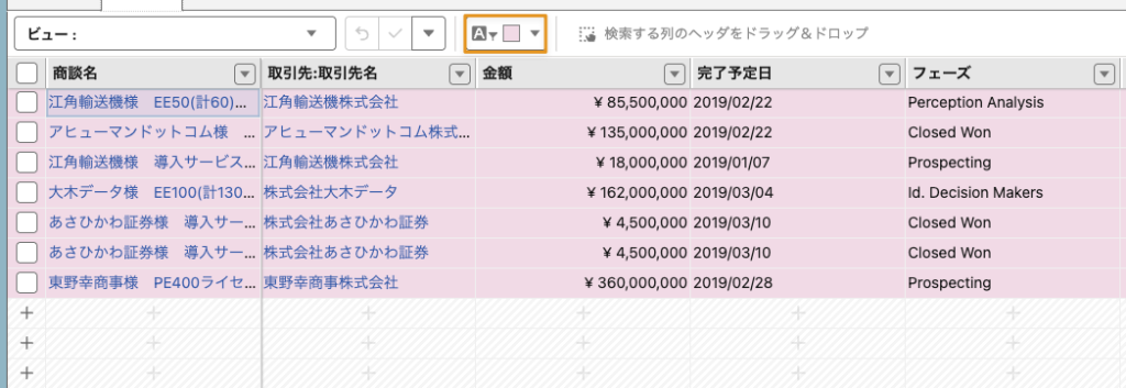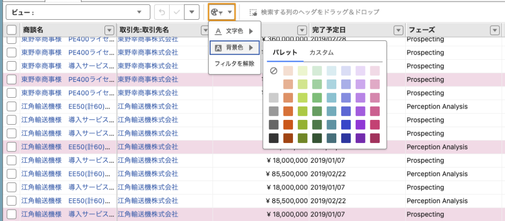シート内に表示されるレコードに対して、個別に背景色や文字色を変更する方法