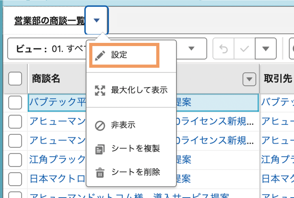 同様に、ビューの設定画面からフィルタを設定することも可能です。