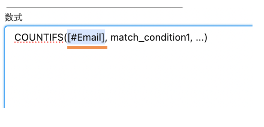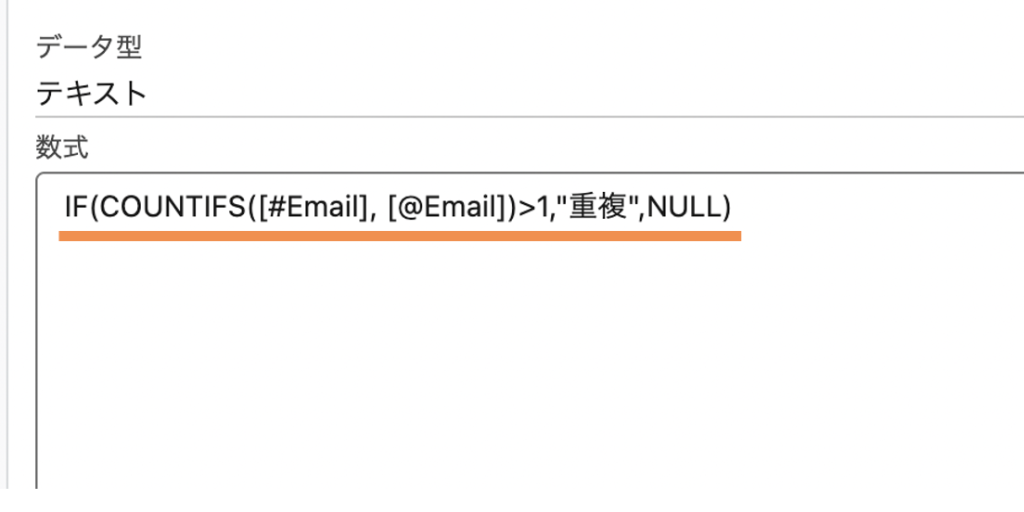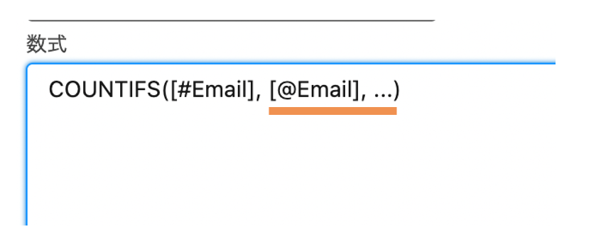 IF(COUNTIFS([#Email], [@Email])>1,”重複”, NULL)