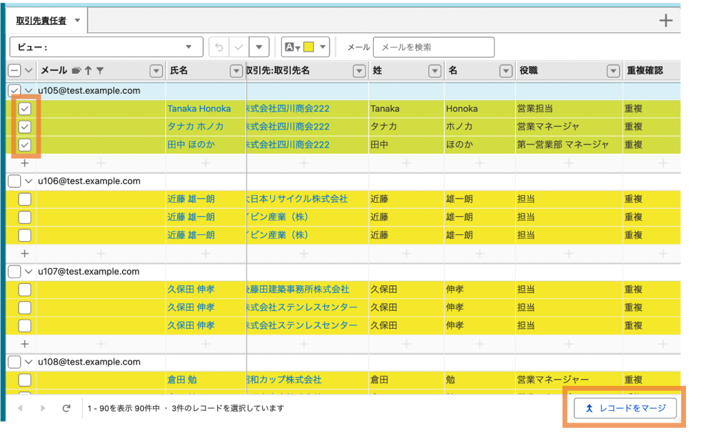 今回は、例として「取引先責任者レコードの重複を検出し、マージする」という流れで解説します。