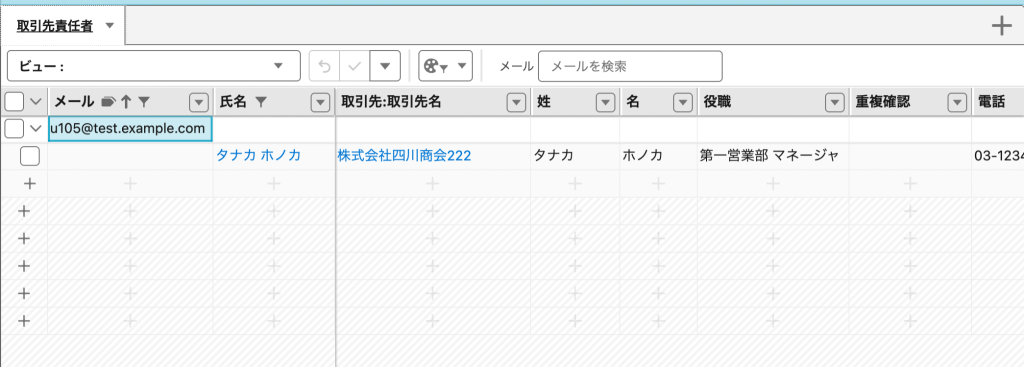 2.メール列をグループ化し、重複している取引先責任者レコードを表示させる