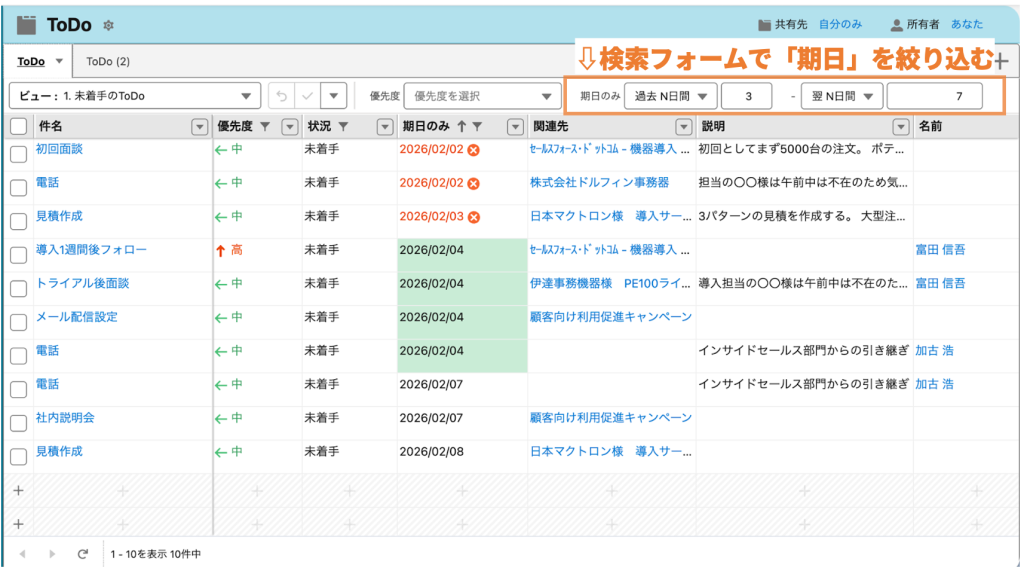 1. 営業担当が直近の未完了タスクを確認する
