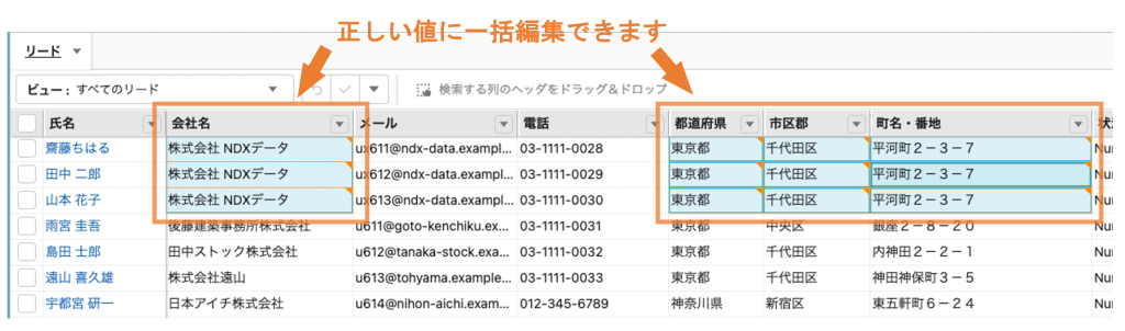 リードの品質を保つためにリードクレンジング作業は必要不可欠ですが、Salesforceの標準機能の場合、リストビューから対象のレコードを一件ずつ開き、確認・修正をしなければならないため、手間がかかってしまいます。
