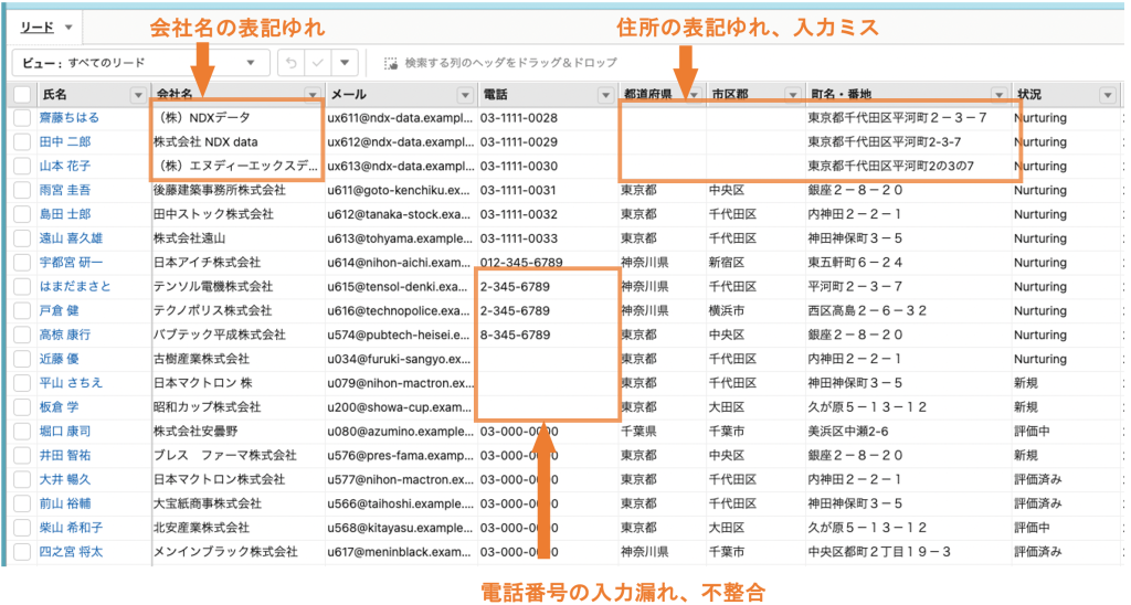 Salesforceで見込顧客の管理を行っている場合、お問い合わせフォームや名刺管理アプリなどから、日々リード情報が登録されると思います。登録された情報がすべて正しければよいのですが、会社名の表記揺れや電話番号の入力ミスなど、不正確なデータが紛れていることも多いです。
