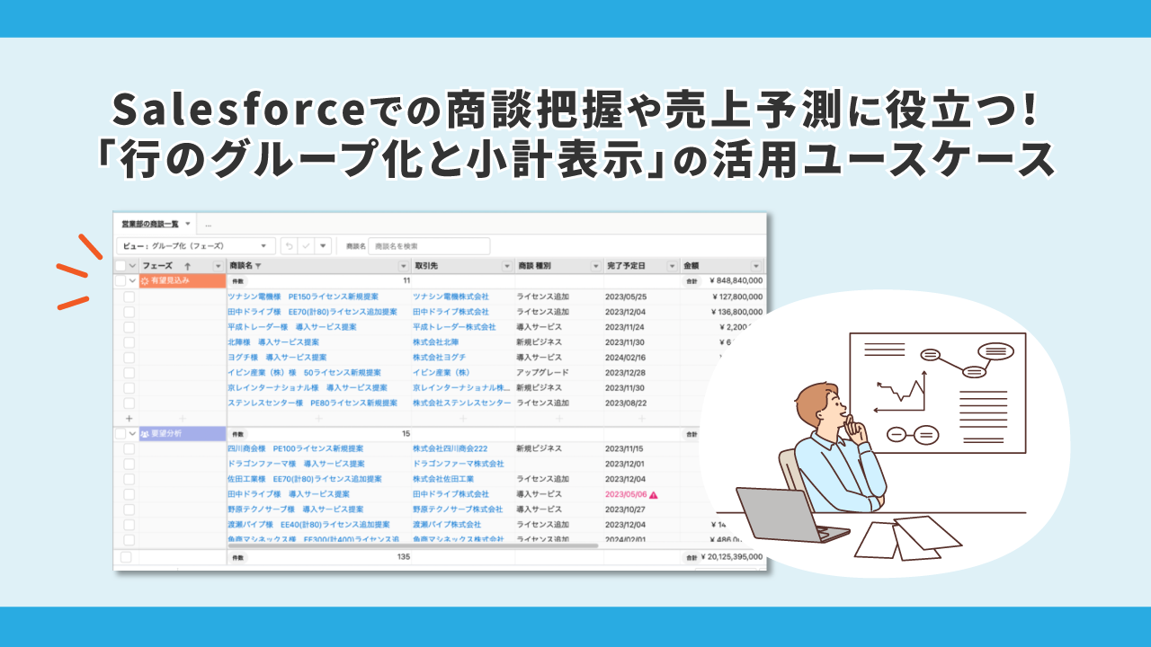 ※Salesforceデータをグルーピングして集計! 「行のグループ化と小計表示」の使い方